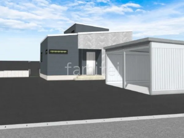 大きなガレージ倉庫で車や物を保管する新築ベーシック オープン外構